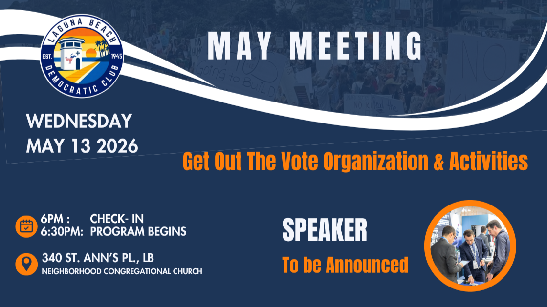 The Laguna Beach Democratic Club (LBDC) was started in 1945 by a group of politically active locals who sought to raise awareness and support for progressive causes and the Democratic Party agenda.For 80 years, and as the first Democratic Club in Orange County, LBDC has supported and elected democratic candidates from City Council to the White House through campaigning, fundraising, activism and voter registration.