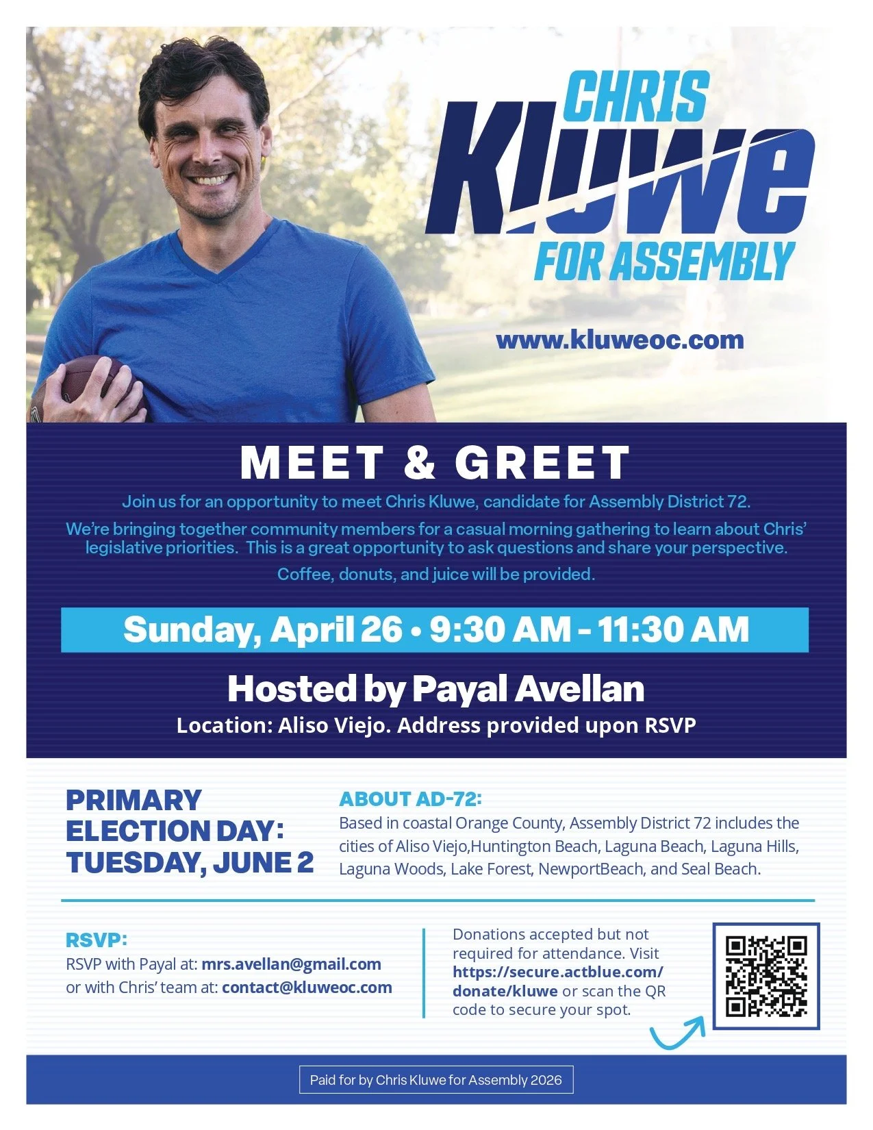 Back to All Events Kluwe Meet+Greet Sunday, April 26, 2026 9:30 AM 11:30 AM Google Calendar ICS RSVP RSVP Donate Donate